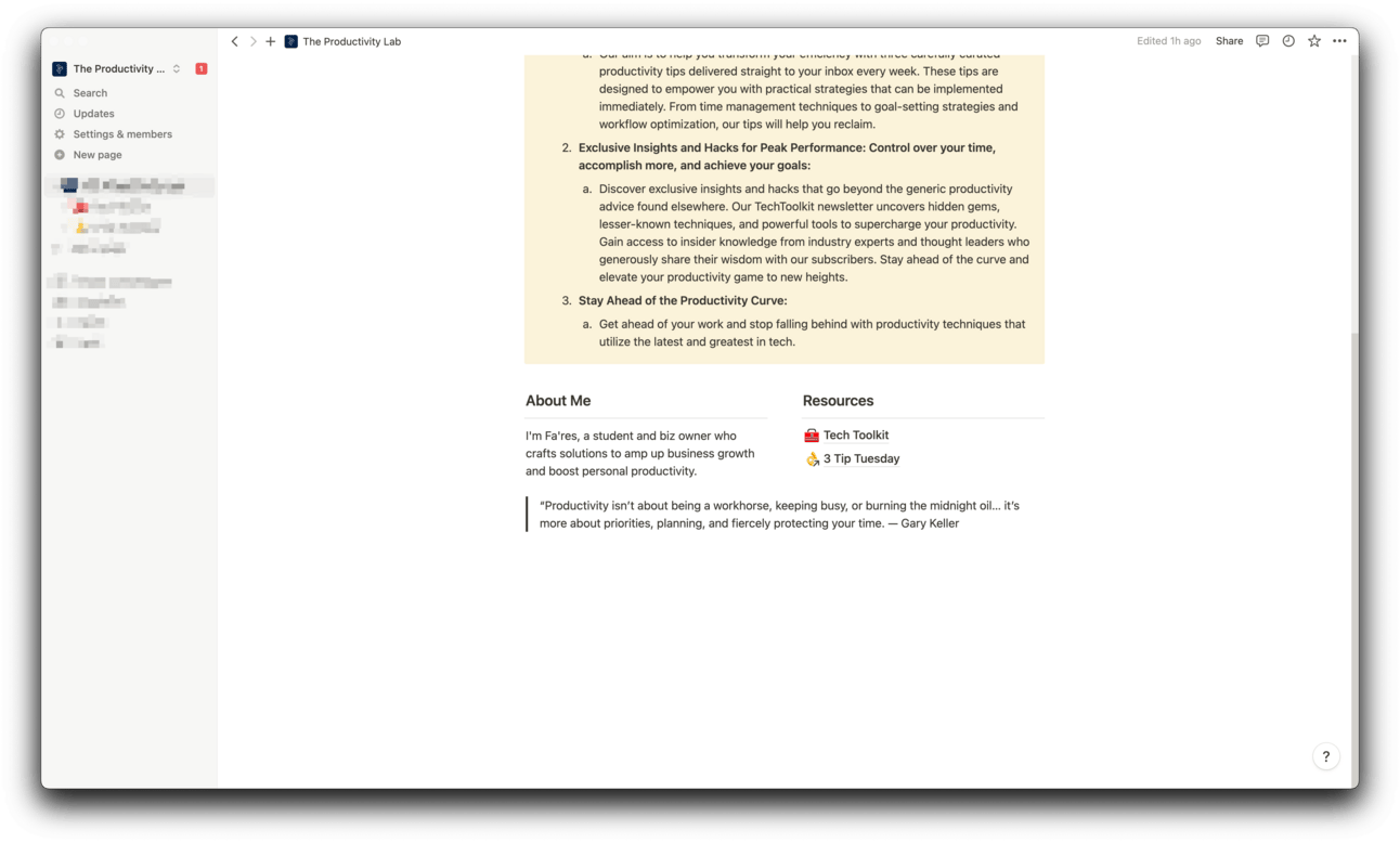 With Notion, you can turn a page into a minimalist, content-focused website. It's perfect for quickly showcasing your work, ideas, or launching a project without the complexities of website design.